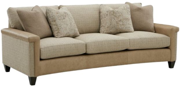 Dramatic shaping is the hallmark trait of this elegant curved-front sofa. Covered in both leather and fabric, it has a unique blended look that can be fully customized with any fabric and leather in our line.Read More