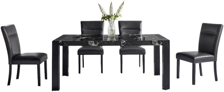 The D4088 Dining Table makes a bold statement with its striking black faux marble top, accented by dramatic white veining for a look that mirrors the beauty of real stone—without the weight or maintenance. Supported by four sleek black wood legs, this table pairs contemporary design with everyday durability.Read More
