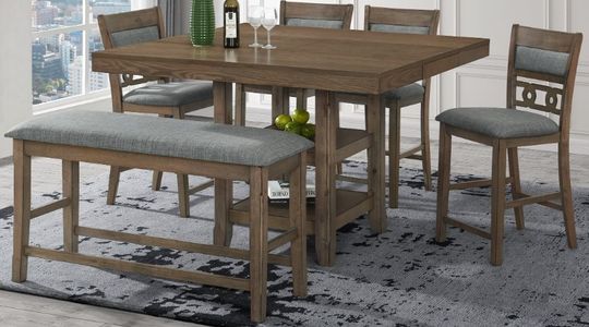 *Counter dining table, 4 bar stool and dining bench only, any other products that may be displayed are sold separately. Images may not represent the actual size and color in images may differ in person. See store for the actual color or finish.