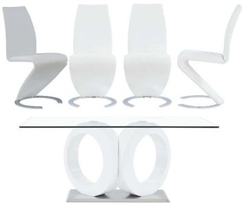 With its artistic design and geometric style this elegant dining table is just what your dining room needs. Featuring sculptural legs in a white finish, rectangular glass tempered top and chromed base to finish the look.Read More