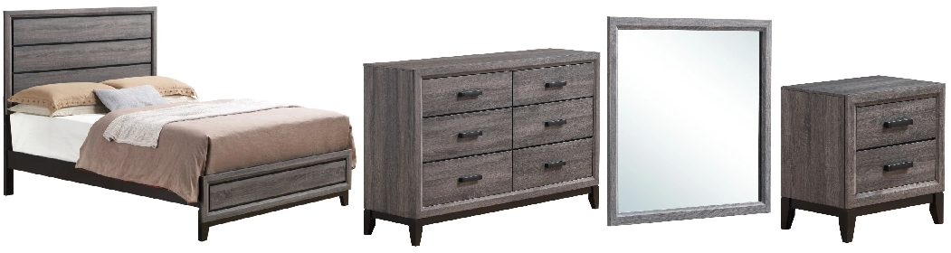 Includes: (1) full bed, (1) dresser, (1) mirror and (1) nightstand