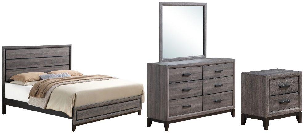 Includes: (1) queen bed, (1) dresser, (1) mirror and (1) nightstand