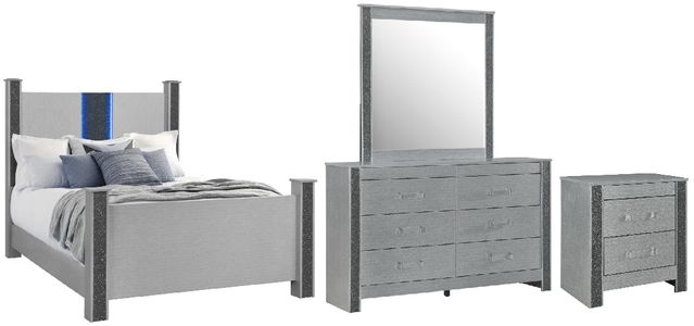 Includes: (1) queen bed, (1) dresser, (1) mirror, and (1) nightstand