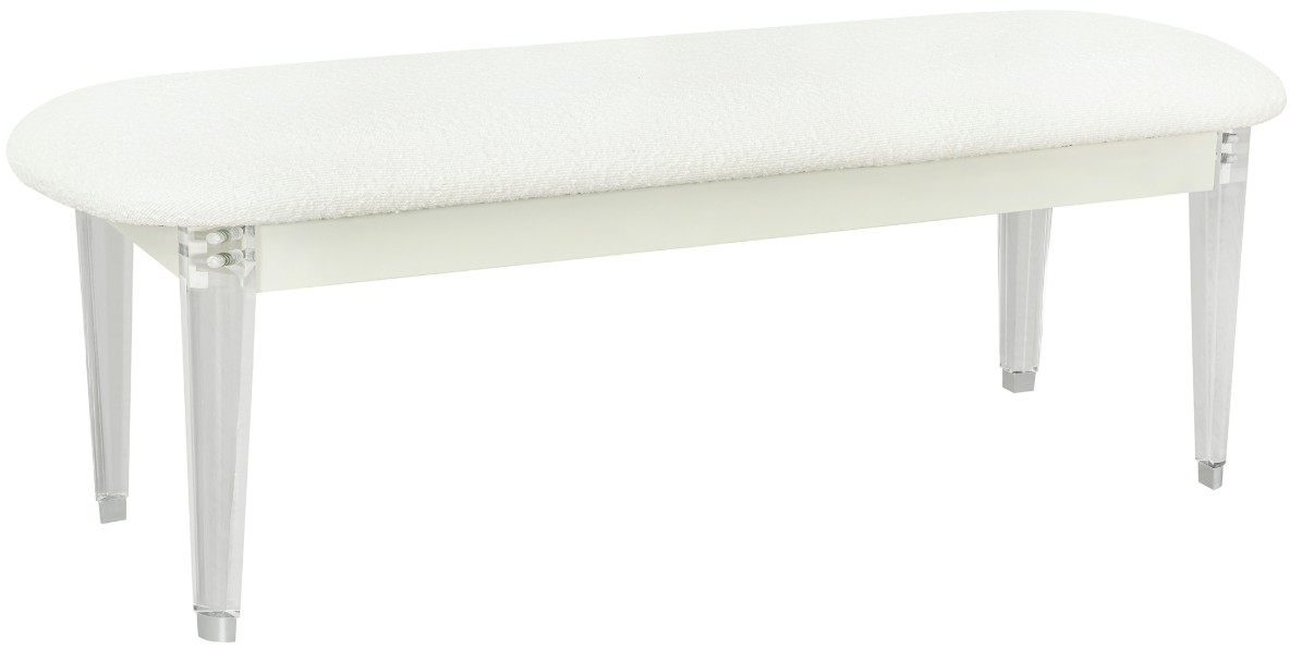 The Lyra Bench brings both comfort and sophistication to the Lyra Bedroom Collection. Upholstered in the same soft white fabric as the bed's headboard, it ties the room's look together with seamless elegance. Its sleek acrylic legs add a touch of modern glamour.Read More
