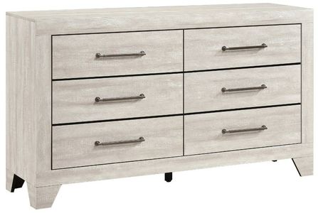 Organize your wardrobe with the spacious and stylish 6-drawer dresser in dusty gray oak. The sleek antique silver-tone bar pulls provide a touch of modern elegance, perfectly complementing the dresser's clean and contemporary design.Read More