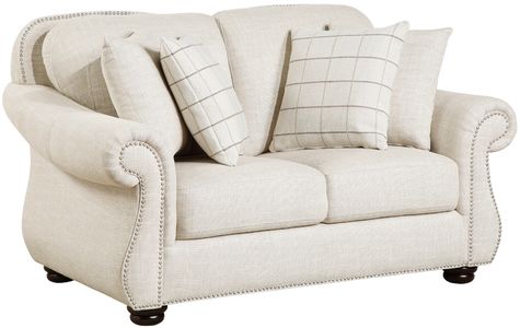 Add a touch of timeless elegance and cozy sophistication to your home with this classic upholstered loveseat, designed for luxurious comfort and refined style. Featuring rolled arms, plush seating, and decorative nailhead trim, this loveseat provides exceptional support and a welcoming feel.Read More
