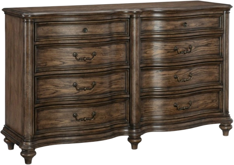 The elegant profile of the Heath Court collection is comprised of classic elements that have been combined to create the perfect addition to your home’s traditional décor. The formal styling of the dresser includes classic elements such routed edges and decorative wood grain. The white oak veneer that graces the dresser is highlighted with a brown oak finish.Read More