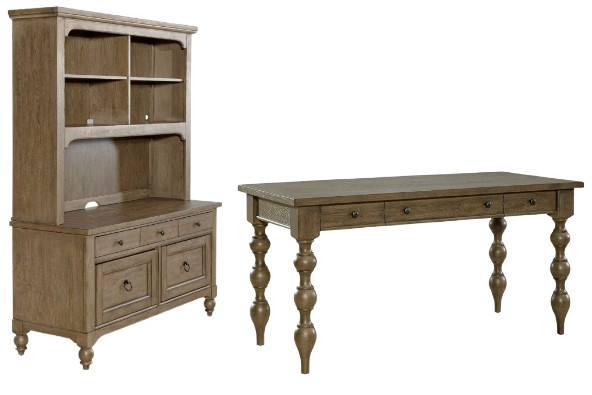 Be distinctively different with the Americana Farmhouse three-piece desk and hutch set. Crafted with excellence using poplar solids and white oak veneers, this set features a Wire-Brushed dusty taupe finish and includes the writing desk, credenza, and credenza hutch.Read More
