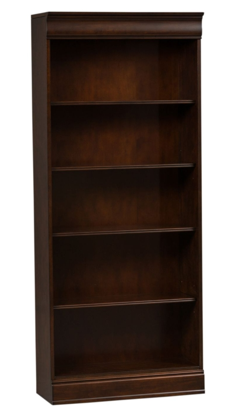 Create scale, add comfort, and define your style with the Brayton Manor Jr executive 72" bookcase. Crafted with poplar solids with cherry and birch veneers, this piece features a smooth cognac finish and adjustable shelving. Crown molding outlines four shelves and the bottom panel, which acts as a fifth shelf.Read More