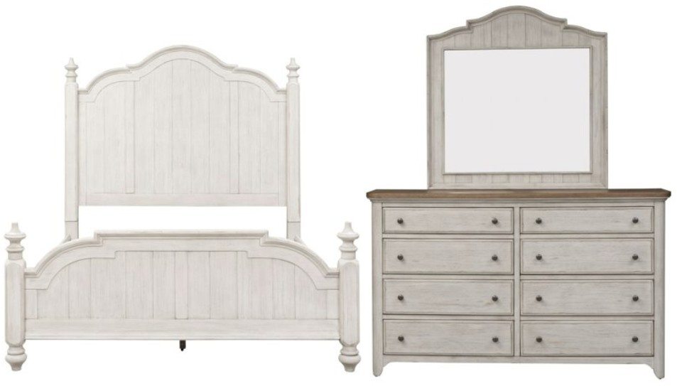 Warm and cozy. Bring beauty indoors with the Farmhouse Reimagined queen poster bed, dresser, and mirror. Farmhouse Reimagined offers cottage styles that you love in a heavily distressed finish that will work from the beach to the mountains to an industrial loft.Read More