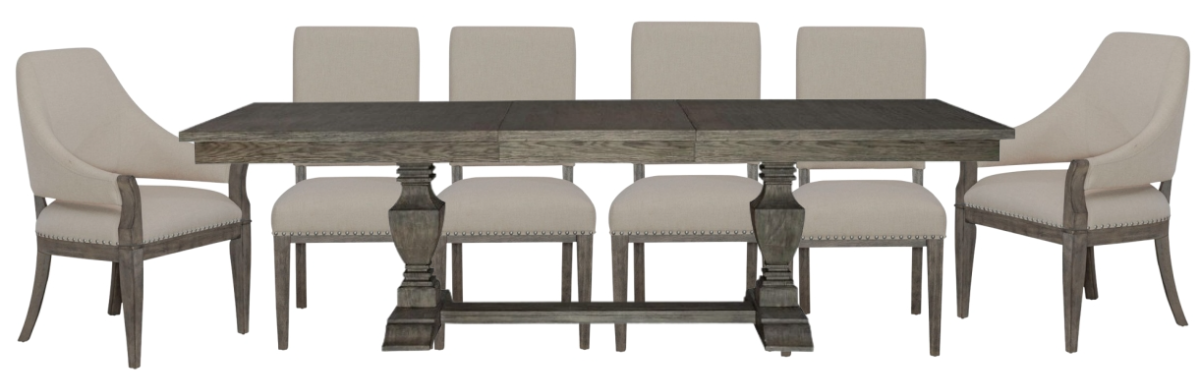 The Westfield seven-piece trestle table set is everything your home deserves. The trestle table has a large twenty-four inch removable leaf on a wooden guide and metal gear track system, making expansion a breeze.Read More