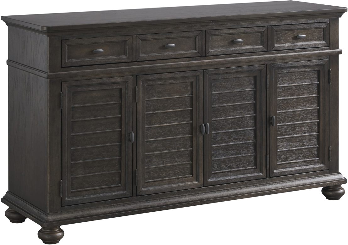 The perfect complement to any dining room or living room, this dining server is fashionably functional. Designed with multi-use practicality in mind, it serves equally well as a living room console. Along with three spacious cabinets and hidden shelf space, two top drawers with full extension glides take storage to the max. Cheers to the wine rack, as well.