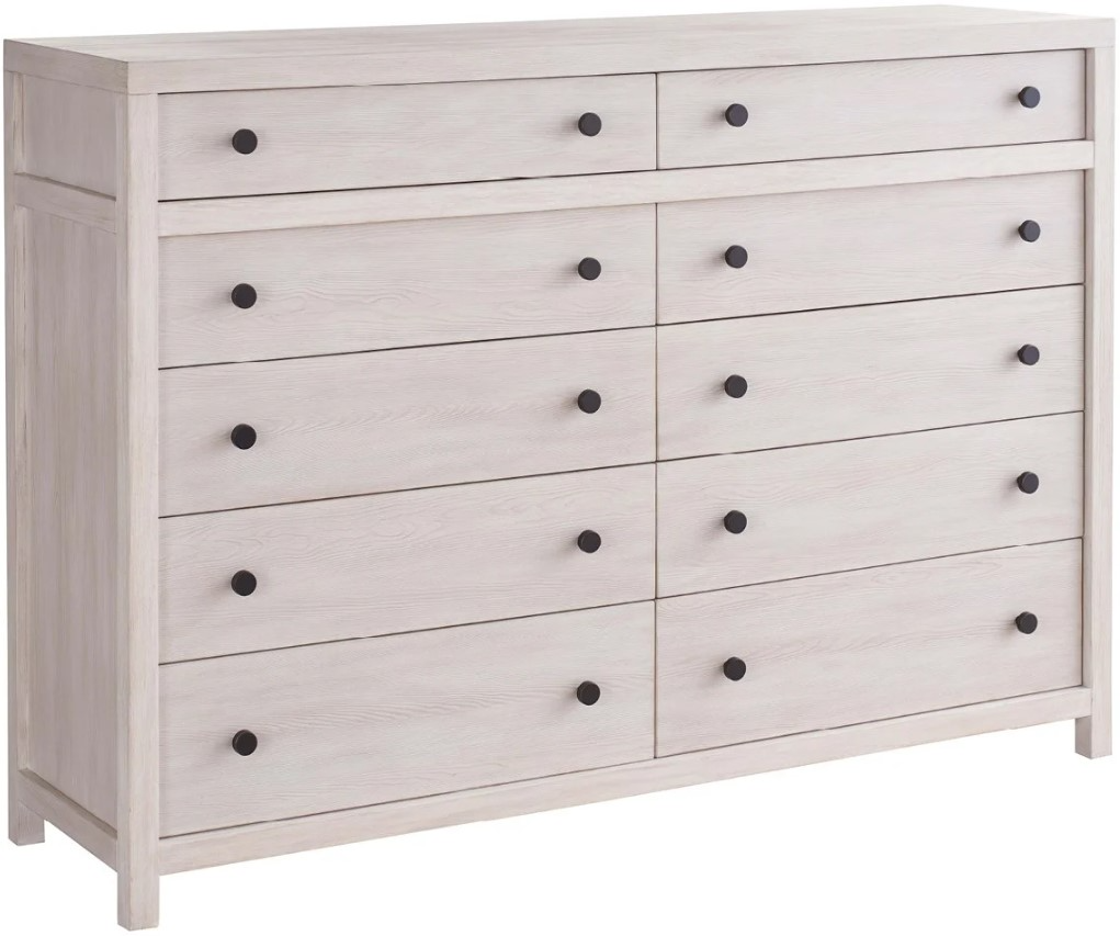 Crafted in a light and airy river rock finish, the ten drawer dresser offers ample storage space with a touch of rustic charm. Its recessed drawers and sturdy construction create a practical and stylish addition to any bedroom, blending seamlessly with the Dwell collection's architectural aesthetic.Read More