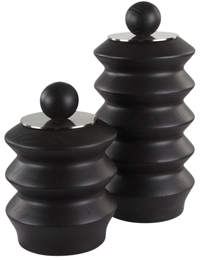 Accent any table or countertop with these black stained wood containers with brushed nickel lift-off lids. And this will be a great fit into your house and that gives a ample design on it.Read More