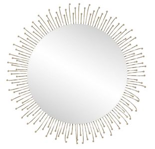 Displaying an elevated contemporary feel, this round mirror creates a floral motif that's finished in an elegant plated gold, surrounding a floating polished edge mirror and a great fit into your house.Read More