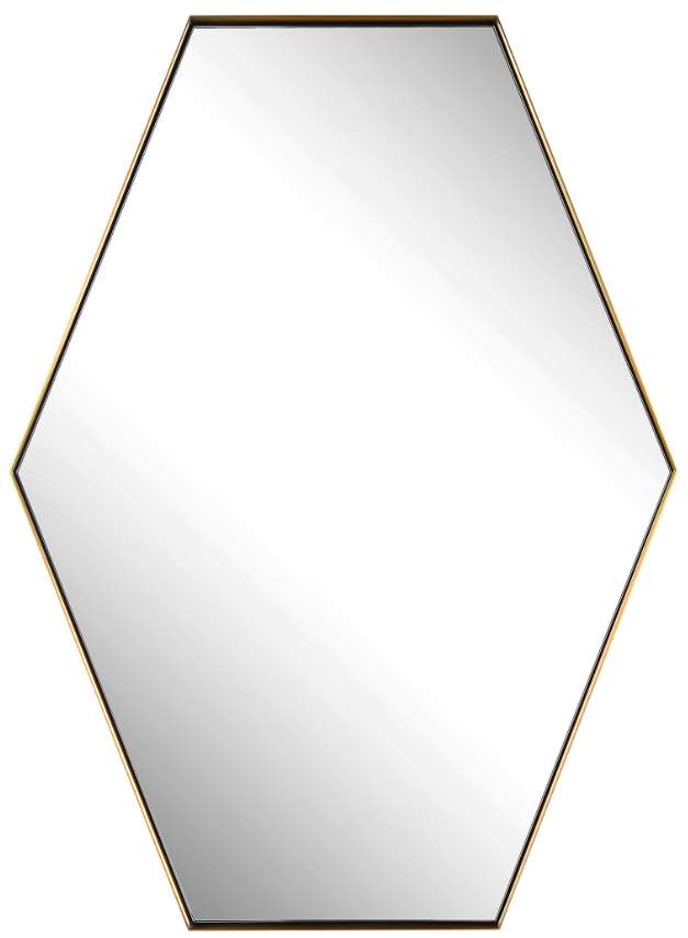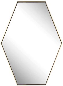 This hexagon mirror features a contemporary style using a stainless steel frame finished in a plated brushed brass, surrounding a floating style polished edge mirror. May be hung horizontal or vertical.Read More