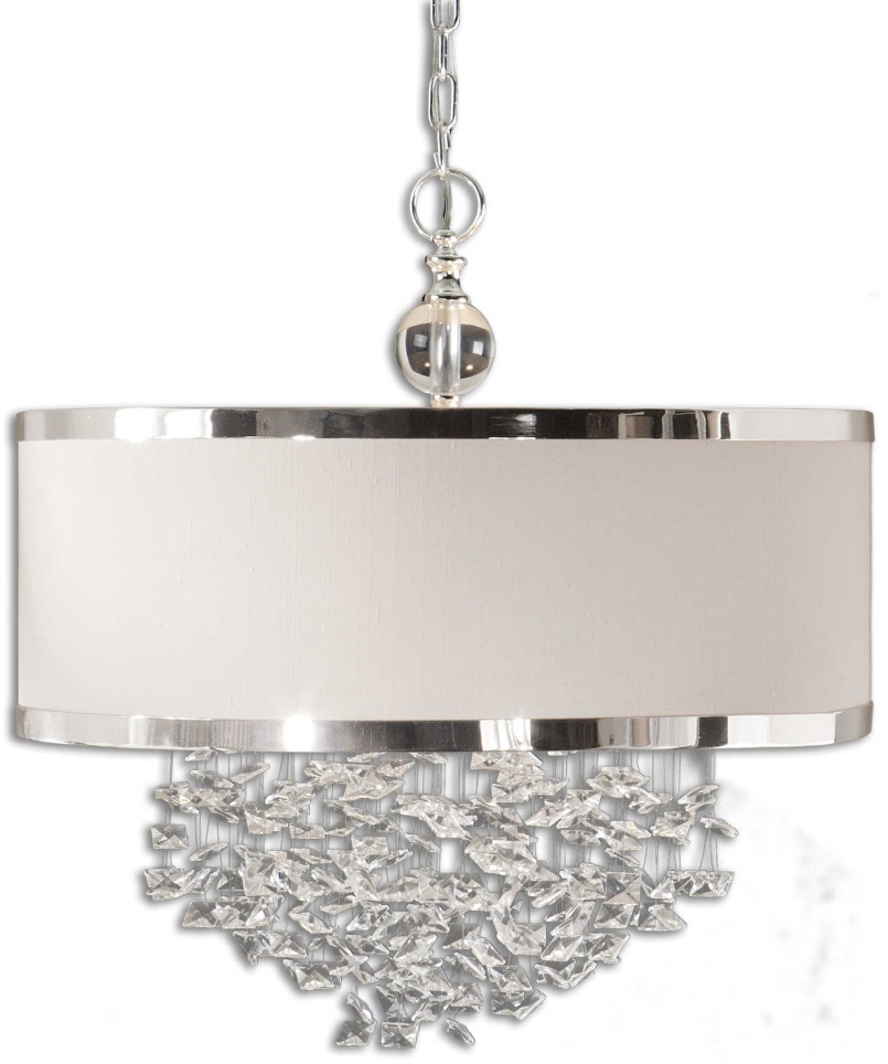 The Classic Appeal Of Crystal Is Updated For Today's Sophisticated Tastes, With Free Falling Crystals And A Silver Trimmed, Antique-white Linen, Drum Shade.Read More
