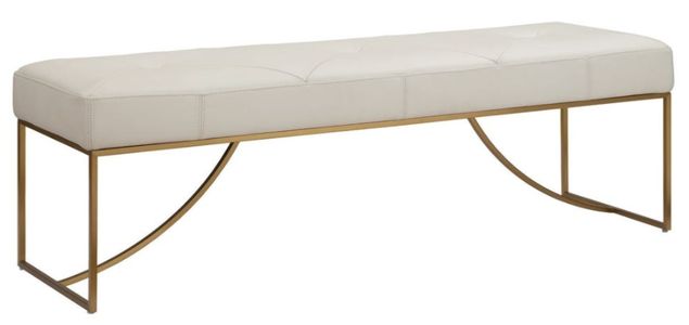 Elegant curves of the stainless steel base in plated brushed brass support the plush diamond tufted seat upholstered in ivory top grain leather. Because leather is a natural product, both texture and color will vary slightly, enhancing leather's uniqueness.Read More